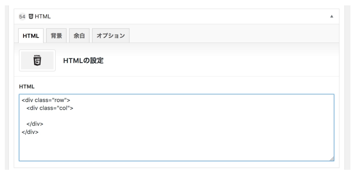 「HTML」のパーツは、HTMLを入力する時に使用します。