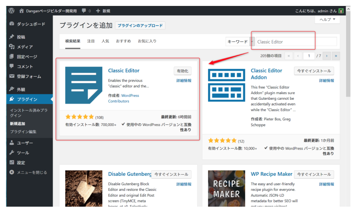 Classic Editorと入力します。 - Classic Editorの「今すぐインストール」のボタンをクリックします。